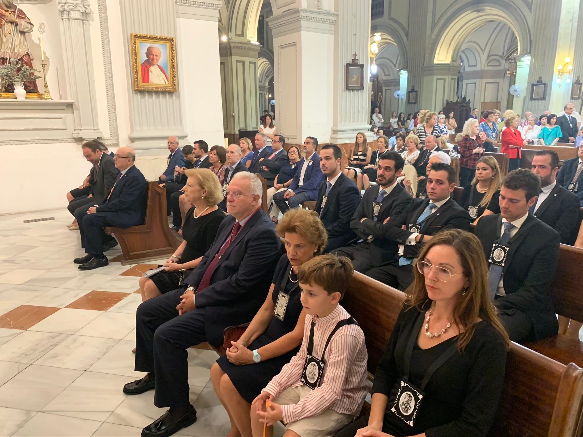 Como estaba previsto, al termino de la Misa, se procedió a la toma de posesión de María de los Ángeles Cáceres Hernández-Ros, reelegida Presidenta en el Cabildo de Elecciones celebrado el 27 de junio, y ratificada por el Obispo de Cartagena, el pasado 1 de julio de 2019. Asimismo, se entregó el Testimonio de Aceptación del cargo de Prioste-Consiliario e impuso el Escapulario de la Orden, al Rvdo. Don Manuel Roberto Burgos Azor, nuevo párroco de la
